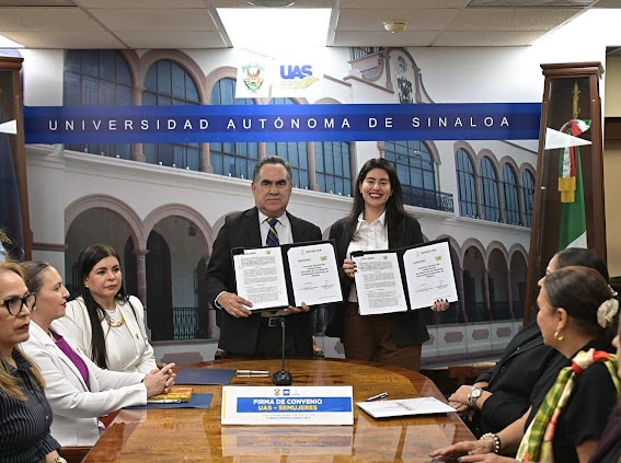 “Las alianzas institucionales fortalecen las oportunidades para las mujeres”: Ana Chiquete Culiacán, Sinaloa, 17 de marzo de 2026. La Secretaría de las Mujeres de Sinaloa y la Universidad Autónoma de Sinaloa (UAS) firmaron este martes un convenio de colaboración con el objetivo de establecer las bases de coordinación, colaboración y apoyo entre ambas instituciones para desarrollar programas académicos de interés mutuo en materia de docencia, investigación y extensión cultural que contribuyan al pleno desarrollo social, económico y político que permita el promover la igualdad sustantiva, la perspectiva de género, la formación integral y profesional de las sinaloenses. Durante la firma, la Secretaria de las Mujeres de Sinaloa, Lcda. Ana Chiquete Elizalde, destacó la convicción y el compromiso de continuar construyendo una cultura basada en la igualdad sustantiva, señalando que la educación es una pieza clave en este proceso. “Estar en conjunto desde la Secretaría de las Mujeres del Gobierno del Estado, con la Universidad Autónoma de Sinaloa, en un acto sobre todo de una declaración de voluntad de compromiso, una visión compartida, la convicción de que la transformación de nuestra sociedad pasa necesariamente por la educación por la participación activa de las instituciones y por la construcción de una cultura de igualdad sustantiva. Quiero reconocer y aprovechar para enviarles una afectuoso saludo de nuestro gobernador, el Dr. Rubén Rocha Moya, quien ha impulsado de manera decidida a una agenda en favor de los derechos de las mujeres, fortaleciendo las instituciones con políticas públicas, ampliando la infraestructura y promoviendo alianzas estratégicas como la que hoy estamos consolidando. Cuando hablamos de educación no hablamos solamente de la formación académica, hablamos de la formación en valores de pensamiento crítico de conciencia social. Hablamos de universidades, que no únicamente preparan profesionistas, hablamos de que se preparan ciudadanas y ciudadanos, comprometidos con su entorno, y en ese sentido el papel que ha jugado la Universidad Autónoma de Sinaloa es fundamental para la construcción de estos espacios, donde se construye el presente y el futuro de Sinaloa, son semilleros también de ideas y liderazgos de transformación”, indicó la Lcda. Ana Chiquete Elizalde. El rector de la Casa Rosalina, Dr. Jesús Madueña Molina le colocó un pin de la UAS a la Lcda. Ana Chiquete Elizalde, que simboliza el compromiso, responsabilidad social y sentido de comunidad que se crea en este momento. Por su parte, el Dr. Madueña Molina, manifestó que las sinaloenses crecen día a día en diferentes ámbitos y la UAS está y estará en ese crecimiento, que se fortalece con este convenio. “Han sido y son muchas las mujeres que han dado el perfil académico, social científico, humanista, cultural y deportivo a nuestra centenaria casa de estudios, a quienes le reconocemos su inteligencia, tenacidad, capacidad de gestión y de resultados. Un indicador que muchos nos satisface, es que el 54% de nuestra matrícula, sean mujeres donde ellas limitado acceso a la educación superior, con ese telón de fondo es para mí un verdadero honor firmar este convenio de colaboración con la Secretaría de las Mujeres, pues estamos plenamente convencidos de que la educación y el conocimiento deben ser siempre una herramienta para la transformación social y la justicia plena como parte de nuestro modelo educativo, que busca una formación integral de igualdad sustantiva entre mujeres y hombres, va más allá de un principio normativo y lo asumimos como un pilar indispensable de la cultura de la paz, un componente básico del desarrollo y una pieza infaltable entre la democracia, donde la voz de las mujeres siempre debe ser escuchada, más que un documento de colaboración este convenio lo vemos como un compromiso con la prevención de la violencia, la promoción de los derechos humanos y el fortalecimiento de una cultura de equidad, respeto y reconocimiento; de tal forma al celebrar esta alianza con la Secretaría de las Mujeres, ampliamos las rutas de coordinación para que la investigación, la docencia y la extensión universitaria se vinculen más estratégicamente con las necesidades aspiraciones y el enorme potencial de las mujeres sinaloenses”, enfatizó el rector de la UAS, Dr. Jesús Madueña Molina. Acompañando en esta firma estuvieron presentes las subsecretarias de SEMujeres, Lcda. Rosa Elena Millán Bueno y Mtra. Eglé Hernández Grijalva, así como personal de la dependencia. Por parte de la Universidad Autónoma de Sinaloa, asistieron la directora de la Unidad de Bienestar Universitario, Dra. Sofía Angulo Olivas; Dra. Nidia Yuriridia Brunn Corona, Secretaria General de la UAS; Dra. Elizabeth Castillo Cabrera, Secretaria de Administración y Finanzas UAS; Dra. Beatriz Eugenia Rodríguez Pérez, Directora de Políticas Públicas de Género para la Igualdad entre Hombres y Mujeres UAS; Lic. Alfonso Ontiveros Salas, Abogado General de la UAS y el Dr. Jesús Sánchez Zazueta, director de Vinculación y Relaciones Internacionales de la UAS. Navegación de entradas Se destinan 420 mdp para rehabilitar carreteras federales y 83 mdp a carreteras estatales Conectividad aérea impulsa el crecimiento económico, el desarrollo y la actividad turística de Mazatlán